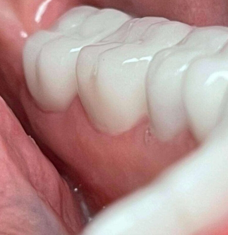 Два дена подоцна ѝ беа поставени постојани коронки. Таа вели дека викала и врескала бидејќи имала многу болки. Кога се вратила дома на почетокот на август, болката само се влошила. Почнала да чувствува дупки во устата и лош вкус.