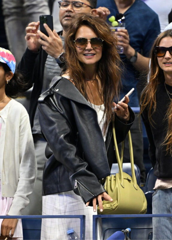 Фотографите на странските медиуми неодамна ја фотографираа актерката Кејти Холмс меѓу гледачите, а таа привлече внимание со својата комбинација на облека.