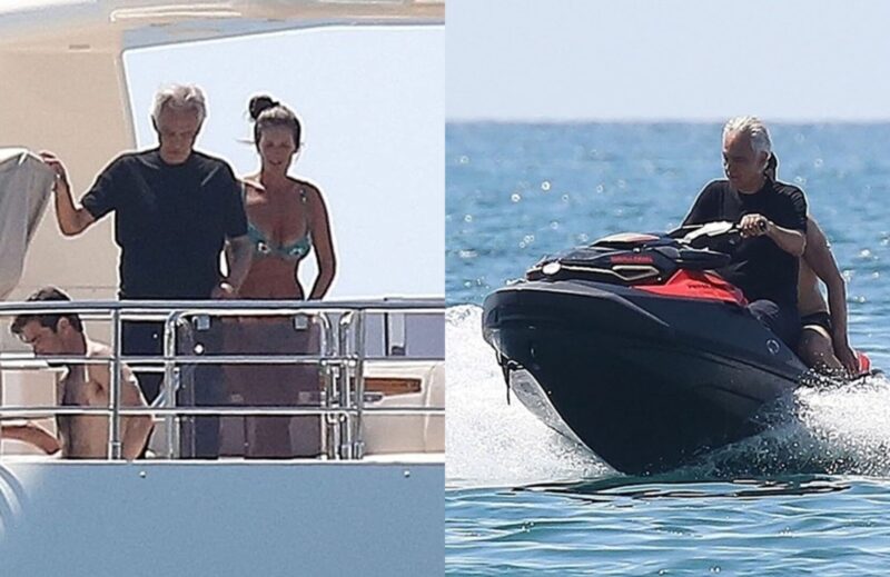 Андреа Бочели и неговата сопруга Вероника Берти се снимени деновиве на луксузна јахта во близина на италијанскиот град Форте деј Марми. Со нив се уште неколку пријатели.