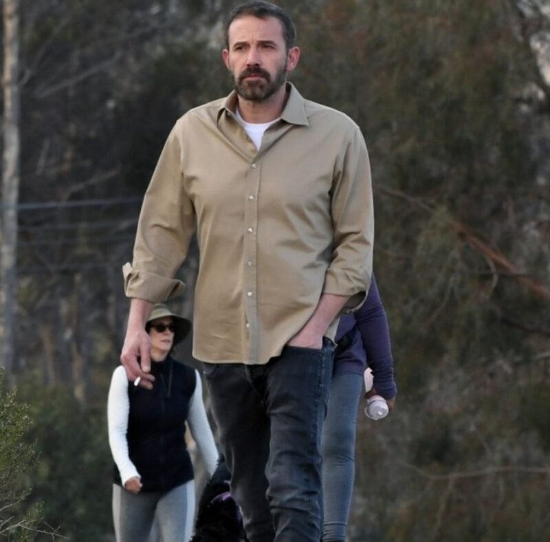 Афлек беше фотографиран во лежерна облека, облечен во бела маица, светло кафена кошула и црни фармерки.