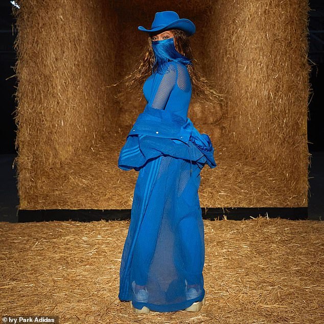Пејачката на Crazy in Love е во кралско сина боја од глава до петици, додека облеката за вежбање од „Ајви парк“ ја комбинира со шапка и маска за лице со реси.