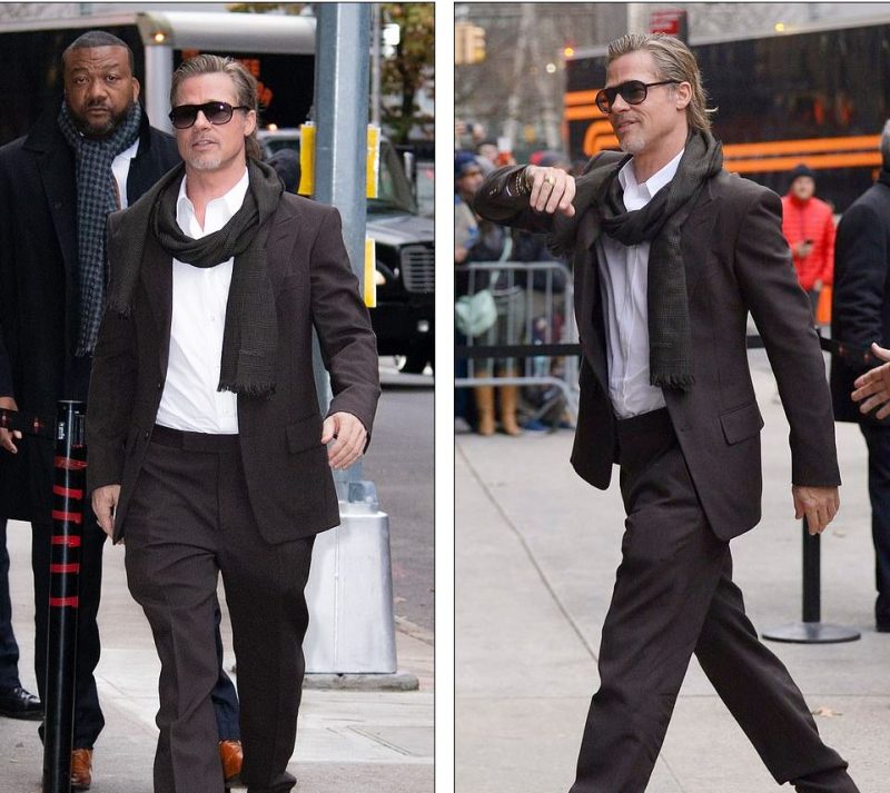 Бред, елегантен како и секогаш, за специјалниот настан облече костум во темнокафеава боја.