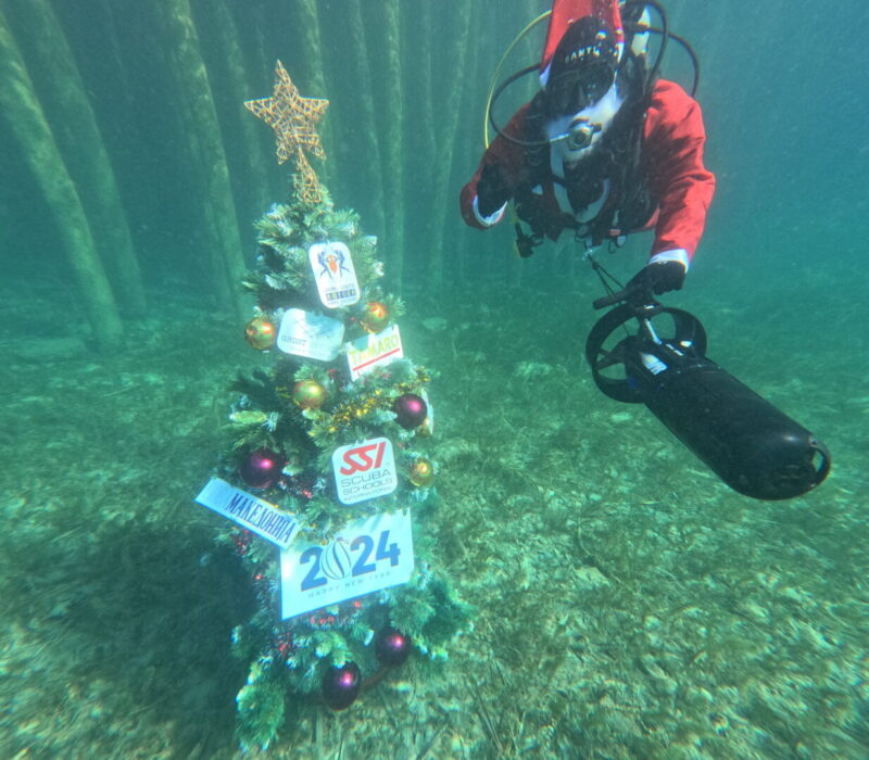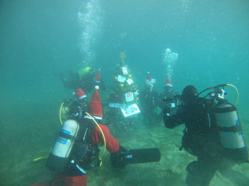 Нуркачите од Нуркачкиот центар „Амфора“ од Охрид, со поддршка на волонтерите на Црвениот крст Охрид, во Музејот на вода традиционално и оваа година ја накитија подводната новогодишна елка и на сите граѓани на Република Македонија им ја честитаат новата 2024 година.