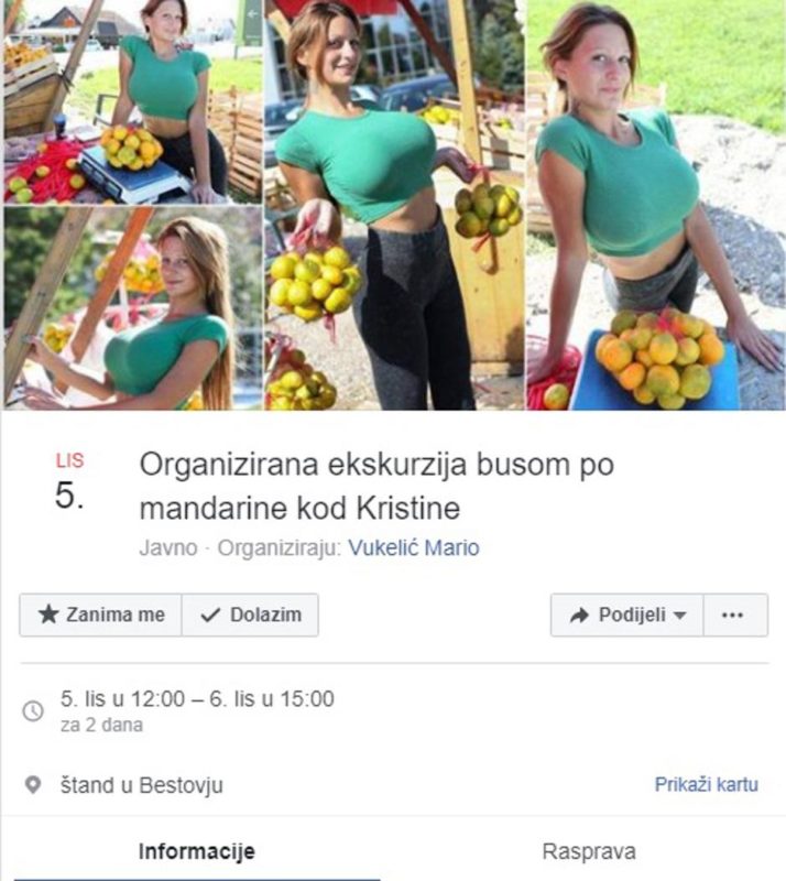 Атрактивната Кристина Пенава (20), која дневно продава и до 300 килограми мандарини во Бестовје, во близина на мостот што го поврзува со Загреб, набргу стана хит.
