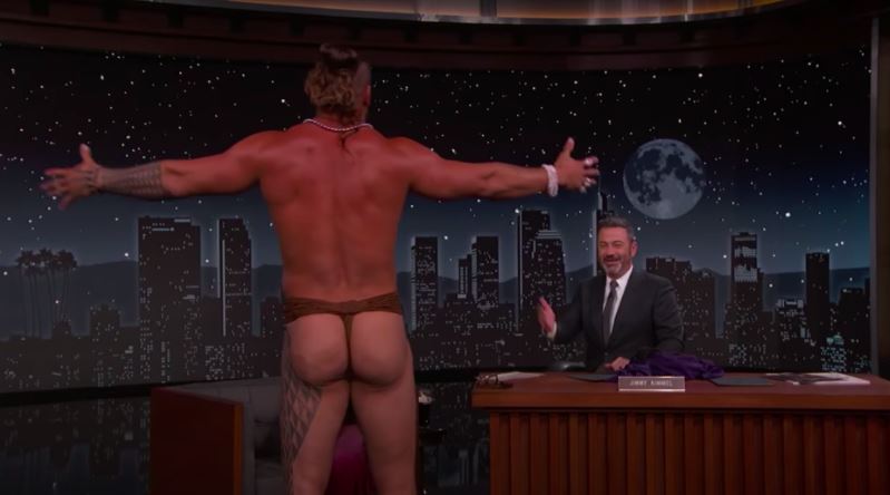(Видео) Џејсон Момоа на гости кај Џими Кимел се разголи и го покажа задникот