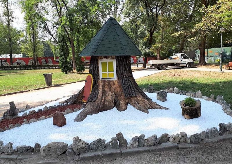 Во Градскиот парк никна куќичка изработена од трупецот на старо и исушено дрво
