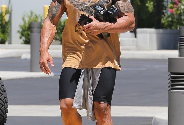 Двејн Џонсон-Карпата ја покажа својата беспрекорна фигура во средата кога беше фотографиран додека се упатува кон сала за вежбање во Лос Анџелес.