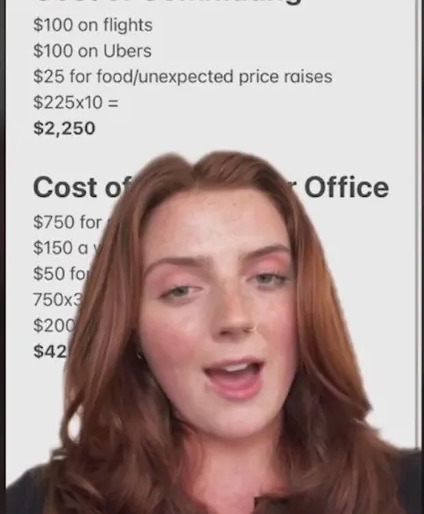 „Патувањето до канцеларија трае околу 45 минути, па стигнувам во 9 часот наутро“, објасни таа и во коментарите откри дека летовите ги плаќа од својата плата.