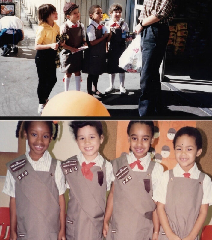 На една од нив таа позира во униформа за извидници држејќи кутија со колачиња и опишува како почнало претприемаштвото за неа во помладите денови кога продавала колачиња.