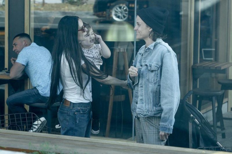 Додека Деми си играше со девојчето, Маша ги гледаше со насмевка. Актерката и стилистката, наводно, се во врска веќе две години, но ниту една од нив не ја потврдила врската.