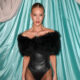 Провокативната и ефектна комбинација ја комплетира со црна чанта, а додека фотографите ја фотографираа, таа не можеше да ја тргне насмевката од лицето.