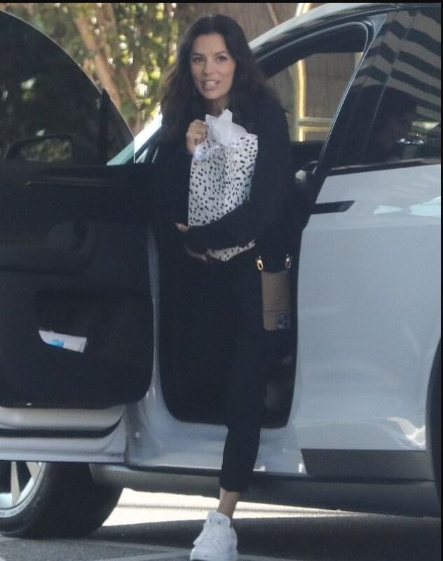 Актерката беше фотографирана додека излегува од својот автомобил со бело-црна торба за подароци во рацете.