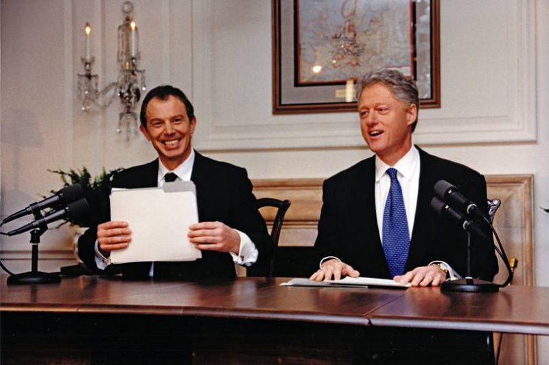 Клинтон тогаш допатува во Лондон за да се сретне со новиот премиер Тони Блер веднаш по победата на лабуристите во мај таа година.
