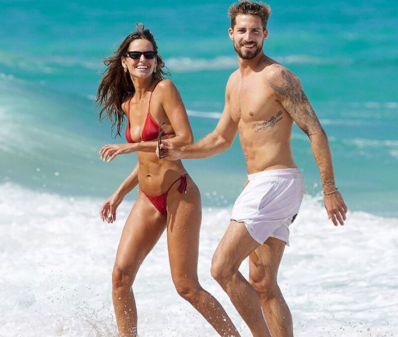 Бразилската манекенка го покажа своето затегнато и исончано тело во минијатурна црвена танга. Се чини дека умее да ужива на белиот песок и во кристално сините води на Сент Бартс, каде што таа и нејзиниот свршеник, фудбалерот Кевин Трап, поминуваат тропски одмор.