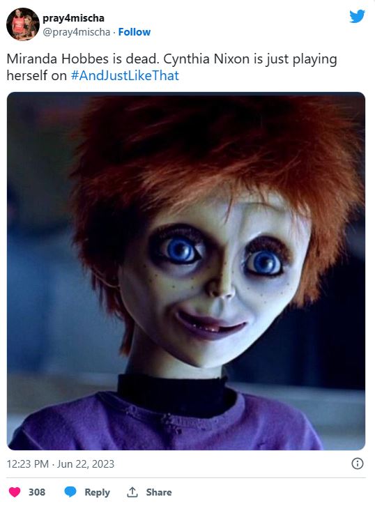 „Миранда Хобс е мртва. Синтија Никсон се глуми себеси“, пишуваат твитерџиите.