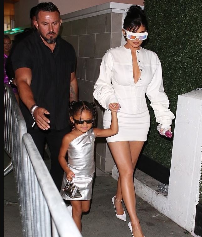 Кајли и ќерката Сторми пристигнаа на забавата по повод лансирање на најновата линија на Kylie Lip Kits (сет за нега на усни) во средата во „Улта бјути“ салонот во Лос Анџелес.