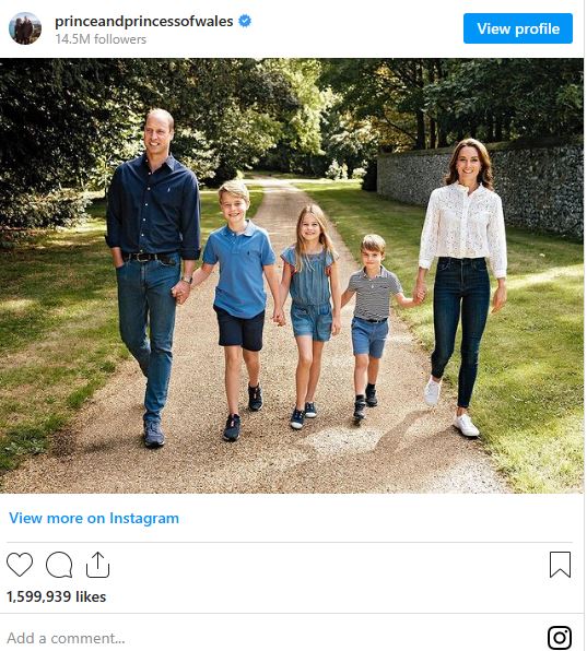 На фотографијата се гледаат принцот Вилијам и неговата сопруга како шетаат низ нивниот имот во Норфолк држејќи се за рака со своите деца, деветгодишниот принц Џорџ, седумгодишната принцеза Шарлот и четиригодишниот принц Луис.