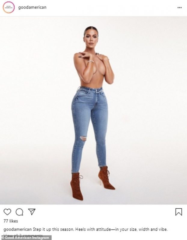 Своите облини ги покажа во средата на „Инстаграм“ додека позира топлес во чизми од кафеав велур со златни потпетици од нејзината линија за облека.