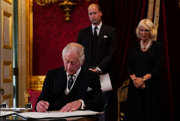На 10 септември Чарлс (официјално принцот од Велс) беше прогласен за крал на церемонија пред Советот за пристапување. Тоа се случи два дена по смртта на мајка му, кралицата Елизабета.