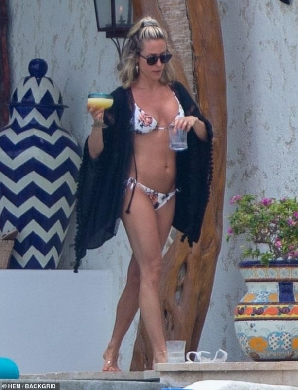 Се чини дека 34-годишната телевизиска личност и дизајнерка за накит го живее својот најдобар живот додека го впива сонцето покрај базенот на изнајмената вила во луксузниот ресорт.