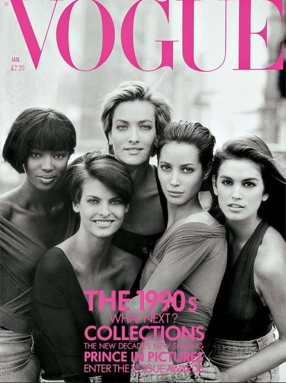 Фантастична четворка: сосема лево – Линда Евангелиста носи блуза и чевли од „Живанши“ и здолниште од „Тиори“. Синди Крафорд носи фустан и чевли „Долче и Габана“, ѓердан „Булгари“. Кристи Тарлингтон носи фустан „Сен Лоран“ од Ентони Вакарело, чевли „Маноло Бланик“, нараквица „Дебирс“. Сосем адесно, Наоми Кембел во фустан „Долче и Габана“, „Пајфери“ чевли и накит од „Булгари“.