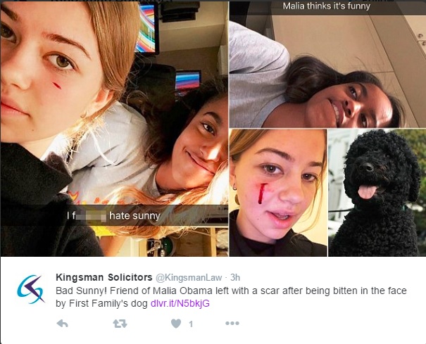 Крв протекла во понеделникот во Белата куќа, кучката Сани на претседателското семејство Обама каснала млада гостинка која веројатно трајно ќе носи лузна којашто ќе ја потсетува на таа средба, објави во четвртокот порталот таблоид TMZ.
