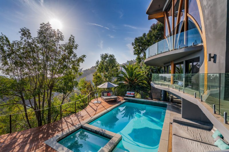 Позната како Ravenseye, куќата со три спални соби била изградена во 1997 година и е дизајнирана од архитектот Хари Геснер, кој е познат по изградбата на најпознатата Wave House од 1957 година на плажата на Малибу.
