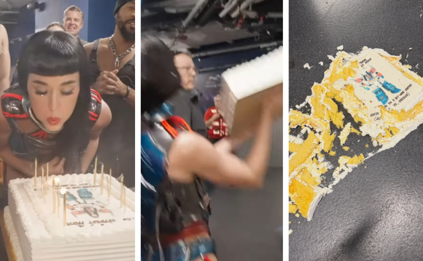 На видеото од прославата се гледа како Пери ги дува свеќичките, а потоа ја фаќа тортата и ја фрла кон еден член од тимот, кој во последен момент ја избегна. Тортата заврши на земи, а некои од танчерите потоа јадеа парчиња од подот.