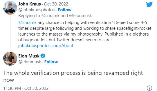 Самиот Маск на својот профил потврди дека работи на промени во процесот на верификација. „Целиот процес на верификација моментно се преработува“, напиша тој.