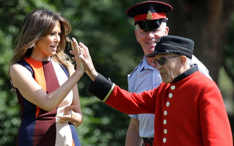 Првата дама на САД, Меланија Трамп, и Филип Меј, сопругот на британската премиерка, се забавуваа додека нивните сопружници имаа состанок, објавија британските медиуми.