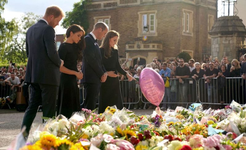 Двајцата браќа, заедно со Кејт и Меган, излегоа да ги погледнат цвеќињата надвор од замокот Виндзор и да се поврзаа со своите ожалостени фанови.