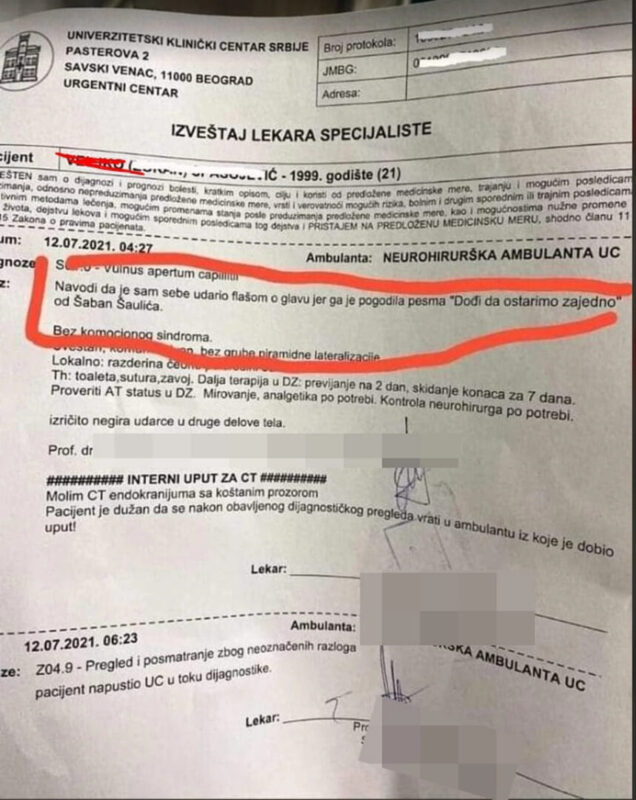 На социјалните мрежи се појавија два наводни лекарски извештаи од Србија и Хрватска, во кои се опишани повредите со кои се здобиле две млади момчиња кои завршиле во Ургентен центар.