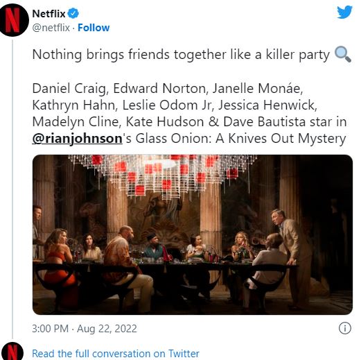 Патем, оваа сума можеби изгледа преголема за релативно мал филм, но првиот Knives Out беше еден од големите хитови од 2019 година, заработувајќи повеќе од 300 милиони долари со инвестиција од 40. Рајан Џонсон беше номиниран за „Оскар“ за најдобро оригинално сценарио.