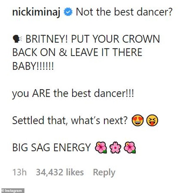 Таа не дозволи Бритни да заборави дека е танцувачка кралица, пренесуваат таблоидите, додавајќи дека под коментарот од фан таа напиша: Бритни, ти си најдобрата танчерка!!!“.