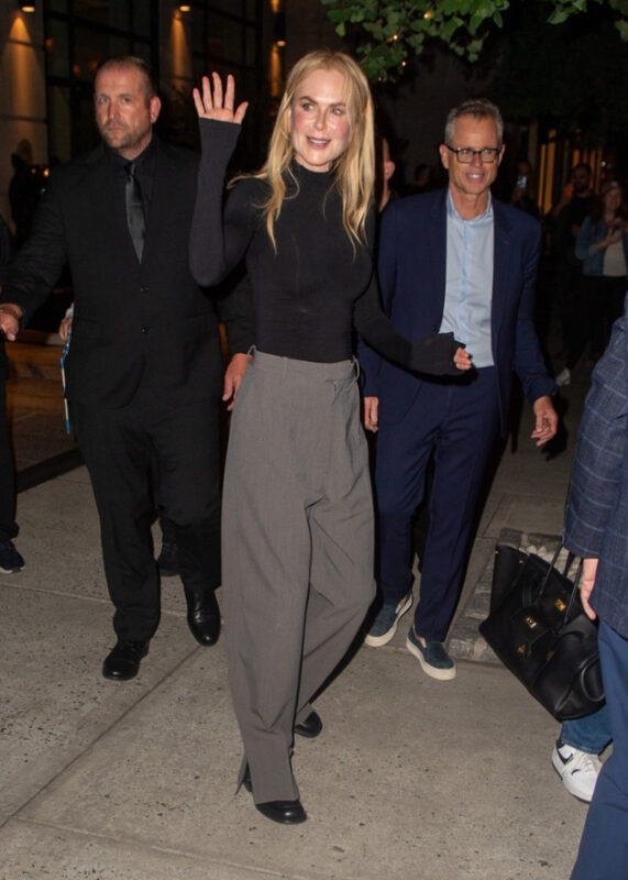 За оваа пригода Никол носеше црна ролка, широки сиви панталони и црни чевли. Таа ја пушти косата и носеше минимална шминка. Судејќи по фотографиите, актерката била добро расположена.