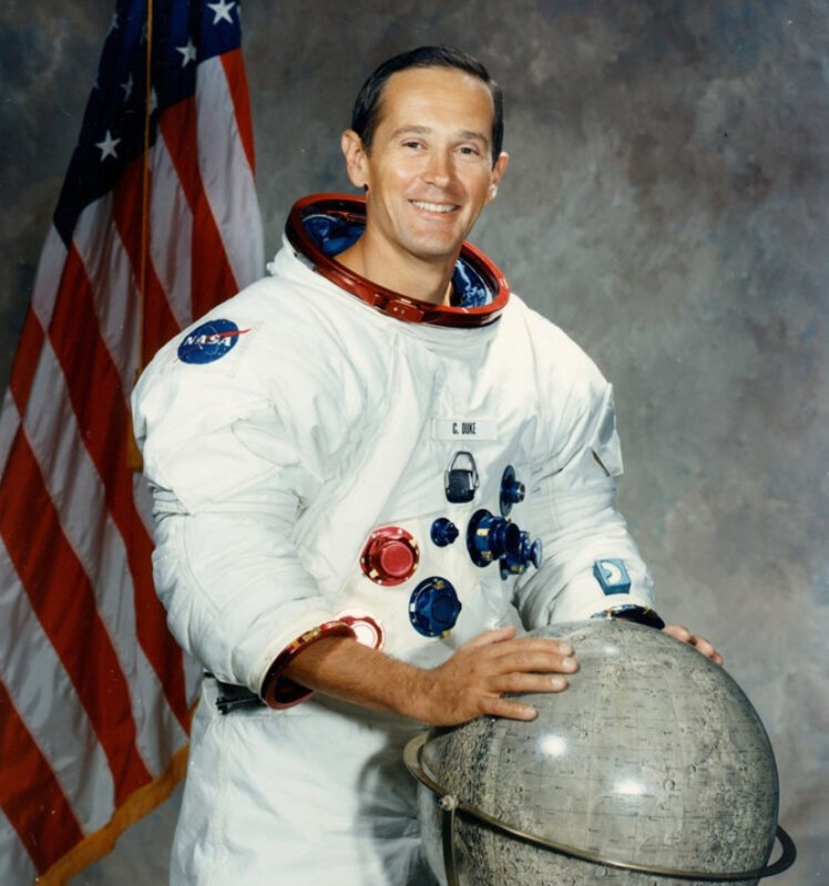 Дјук, кој беше пилот на лунарниот модул, кој беше лансиран во мисијата на 16 април 1972 година. Четири дена подоцна, со само 36 години, тој стана најмладиот човек што чекорел на Месечината.