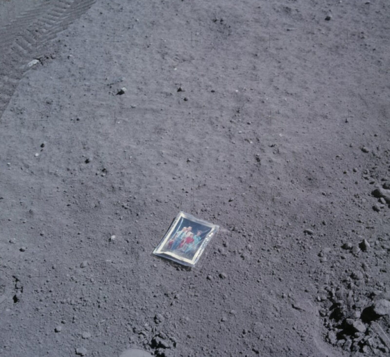 Астронаутот Чарлс Дјук, член на мисијата Аполо 16, оставил семејна фотографија на Месечината за време на неговата мисија во 1972 година. На сликата се тој, неговата сопруга Дороти и нивните два сина, Чарлс Дјук III и Томас Дјук.