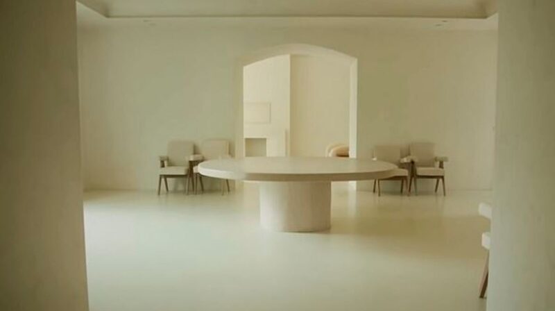 Персоналот на Кардашјан носи облека во неутрални бои во склад со светлите тонови на куќата