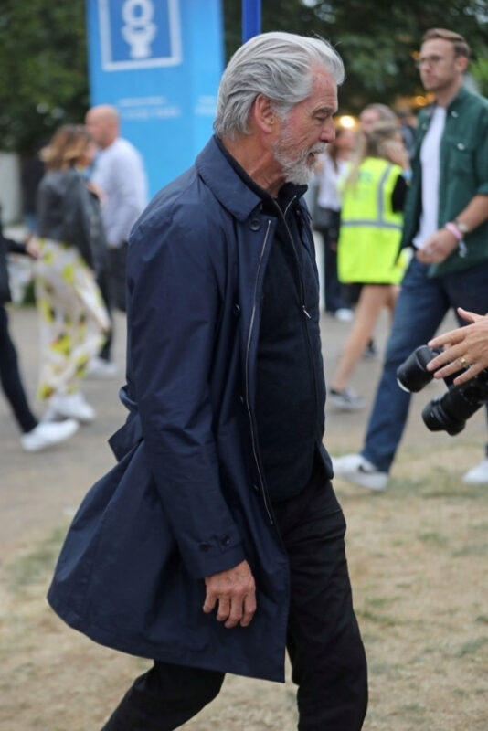 Познатиот актер Пирс Броснан е снимен на музички фестивал во лондонскиот Хајд парк, а со својот изглед ги изненади обожавателите.