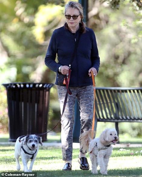 Филмската и ТВ-актерка, која наполни 77 години овој месец, ја покажа својата вита фигура во атлетска облека на прошетка во парк со двете кучиња.