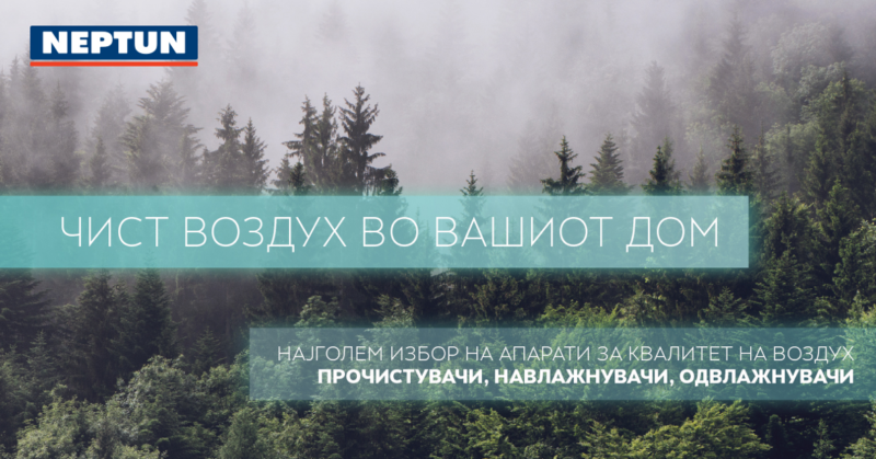 Дознајте повеќе за уредите за квалитет на воздух и погледнете ги одличните понуди во сите Нептун продажни салони ширум Македонија на овој ЛИНК. Во Нептун може да најдете најголем избор на апарати за квалитет на воздух: прочистувачи, навлажнувачи и одвалжнувачи од најдобрите брендови по супер цени со големи попусти. Погледнете го летокот со акциските производи на овој ЛИНК.