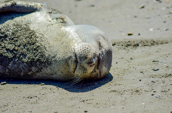 По пливањето со туристите, младата фока одлучи да излезе од водата и малку да отспие на плажата.