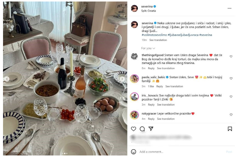 Хрватската пејачка Северина го помина Велигден со најблиските членови на семејството, а на Инстаграм објави фотографија од семејното дружење со пригодна честитка.