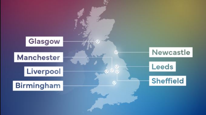 Бирмингем, Глазгов, Лидс, Ливерпул, Манчестер, Њукасл и Шефилд ќе се натпреваруваат за организација на настанот што ќе се одржи во мај в година.