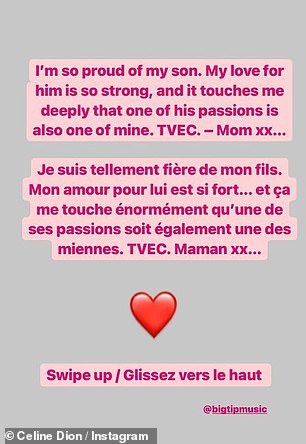Канадската дива (52) на својата инстаграм-приказна ја промовираше новата музика на 20-годишниот син и напиша дека е многу горда на него.