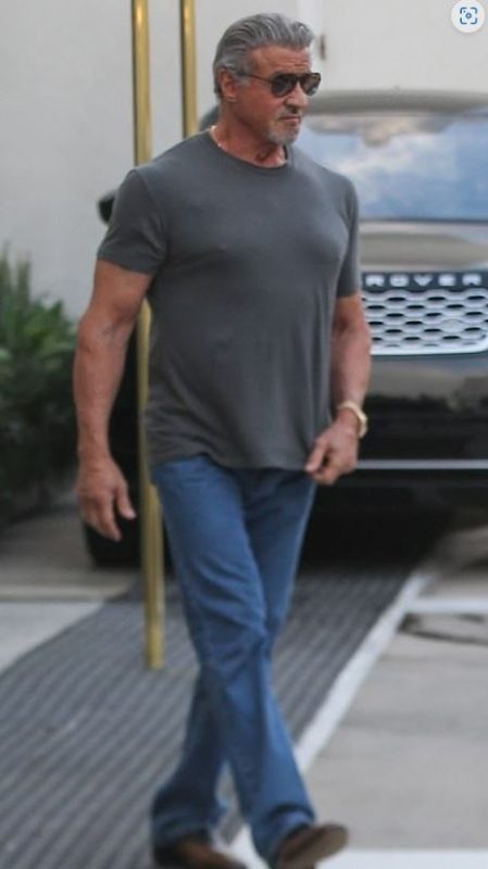 „Рамбо“ ја покажа својата фигура во тесна сива маичка и сини фармерки.