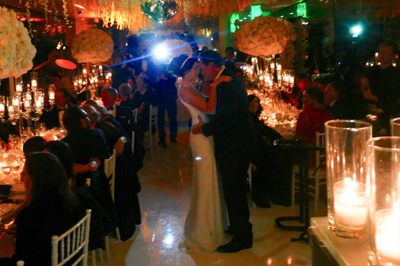 Организирана е интимна церемонија за најблиските пријатели и семејството во Беверли Хилс. По разменувањето на заветот, новата брачна двојка го одигра својот прв танц пред гостите.