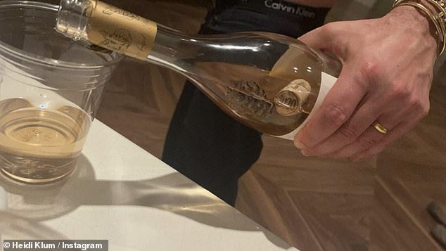 48-годишниот супермодел го сподели моментот на инстаграм-стори во четвртокот навечер, каде се гледа како сопругот (32) ѝ пее додека делат шише розе.
