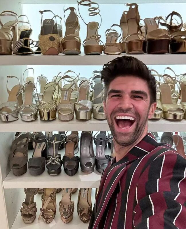 Групата се забавуваше и се фотографира во просторијата за облека, а Џастин позира со куп чевли на Софија.