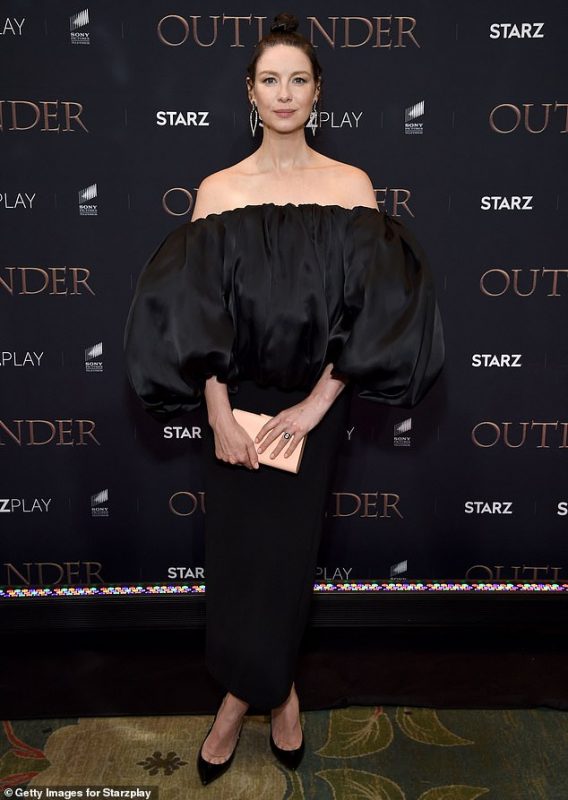 Катрина Балф има софистициран и аристократски изглед на премиерата на шестата сезона на британско-американската серија „Аутлендер“ во Беверли Хилс.